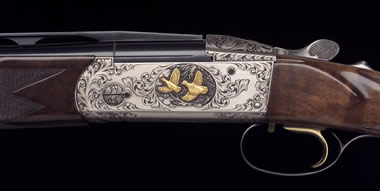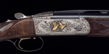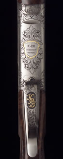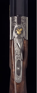 NOTE: The gold bird inlay on the top latch and the gold initials on the trigger guard are add-on options to the Gold Bavaria Royale Grade.